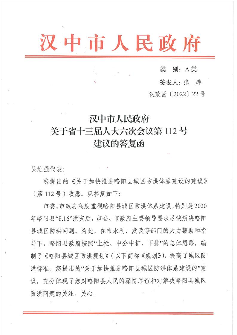 关于省十三届人大六次会议第112号建议的答复函