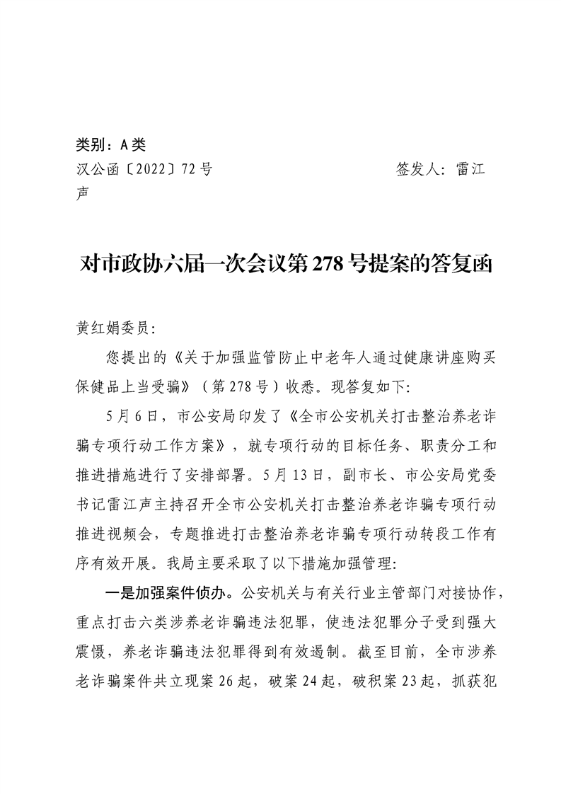 对市政协六届一次会议第278号提案的答复函